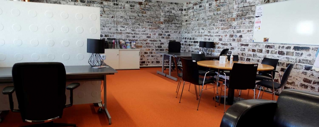 • Im Coworking-Raum stehen dir mehrere Schreibtische zur Verfügung.